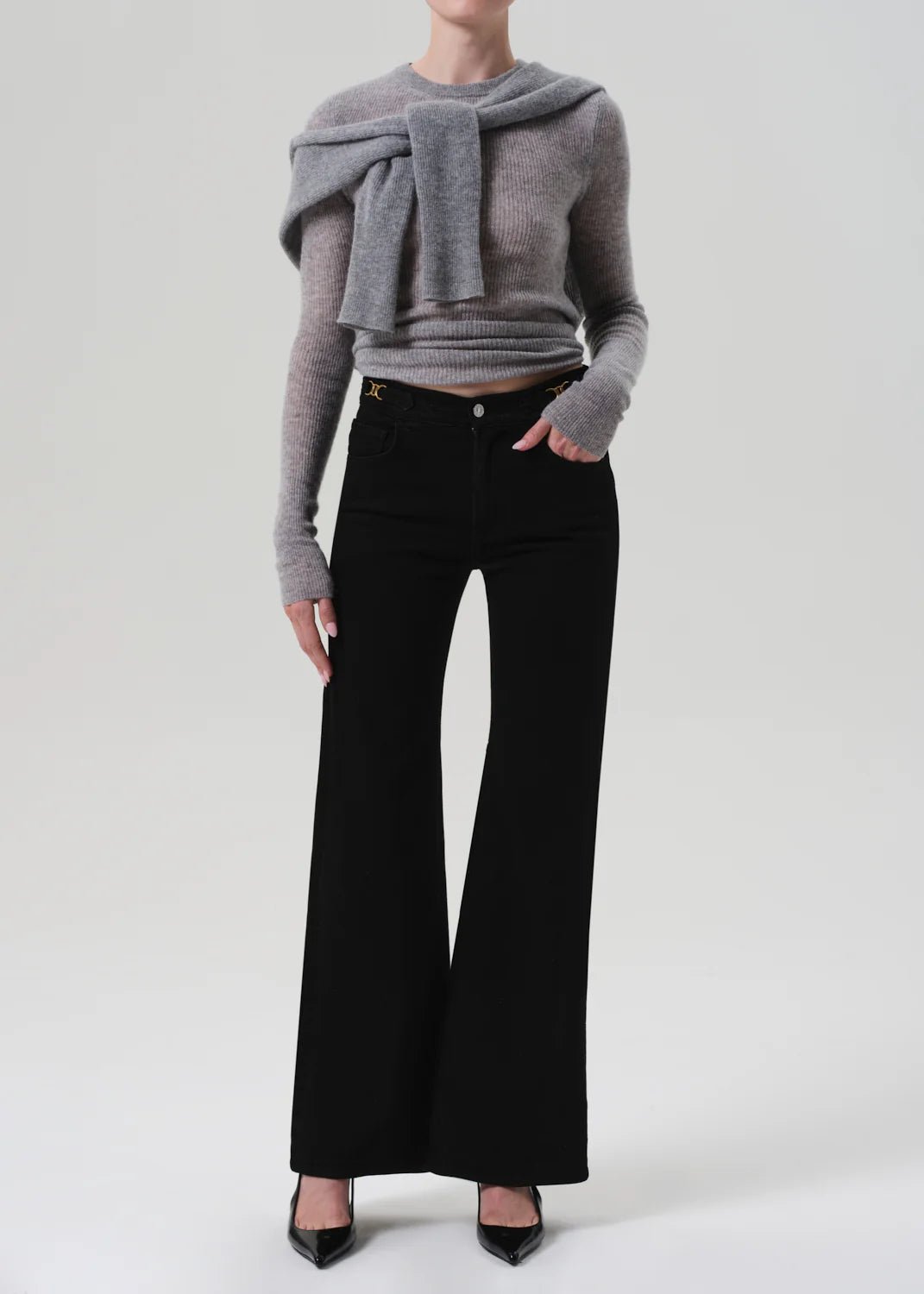 The Kimberly is a high-rise flare designed to elongate the leg and contour the waist, finished with horsebit detailing at the waistband for a refined, equestrian-inspired touch. Crafted from comfort stretch archive denim with a super soft hand, the Rich Black wash delivers a sleek, modern finish. Style with crisp shirting or a fitted knit for an elevated everyday look.