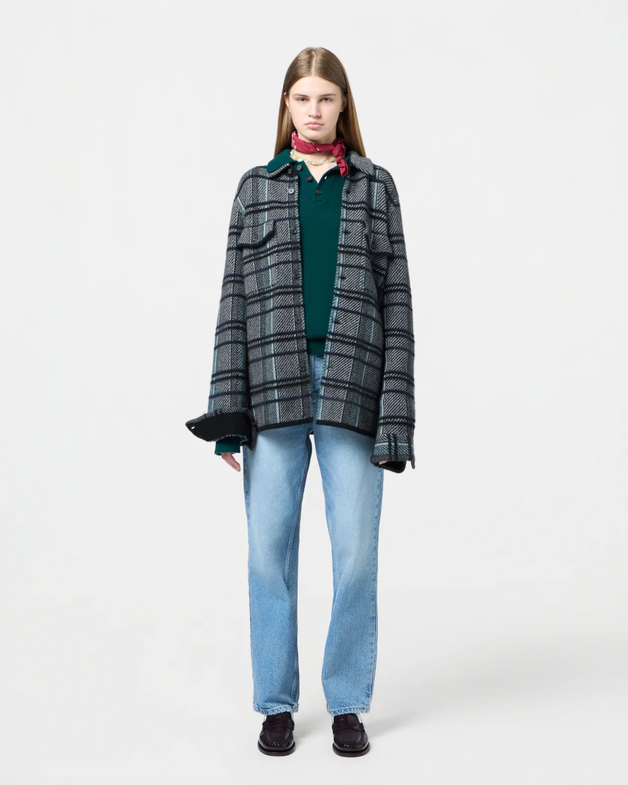 A modern take on classic Western workwear, the Plaid Work Shirt is crafted from 100% medium-weight cashmere with an intentionally oversized fit. Its colorful plaid pattern and soft texture make it the ultimate everyday layer — worn solo or over knits.