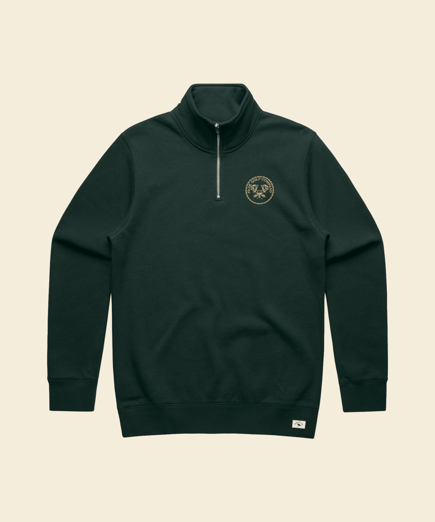 A refined unisex layer combining class and comfort. The Links Crest Quarter Zip is made from mid-heavyweight 10.3 oz CVC fleece, blending 80% cotton with 20% recycled polyester for a soft yet structured feel that resists pilling. Featuring a smooth cotton-faced fleece exterior and finished with a zip-up mock neck, ribbed cuffs and hem ribbing for a refined, elevated fit. Preshrunk to minimize shrinkage and detailed with our Links Crest embroidered in gold, this unisex quarter zip is an easy go-to from cool mornings to a post-round dinner in the clubhouse.