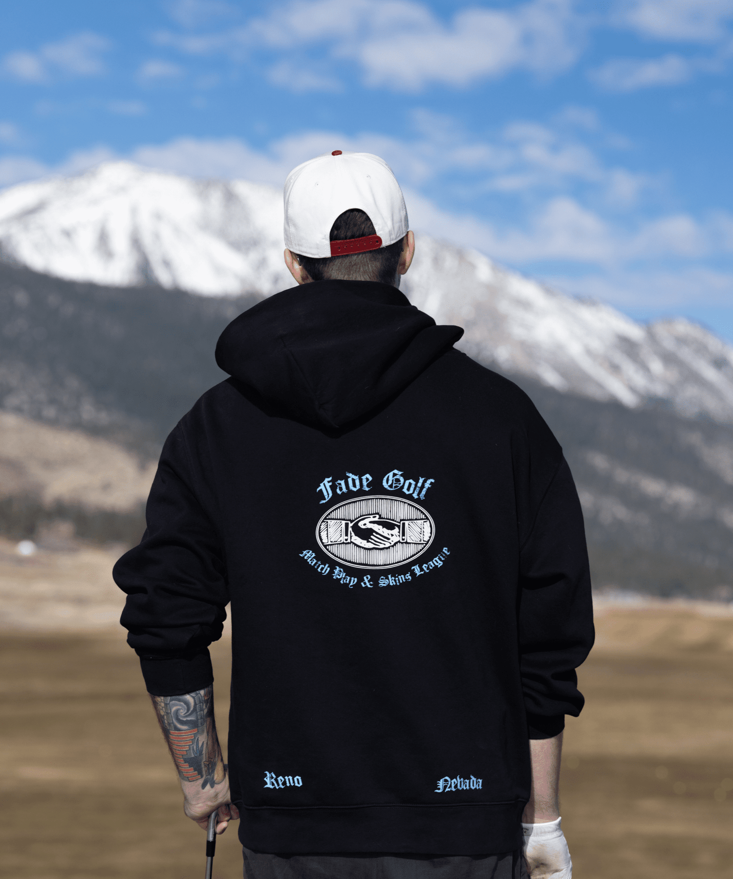 A homage to one of golf’s oldest traditions, the Skins Game Hoodie pays tribute to friendly wagers and competitive rounds. Featuring a handshake graphic on the back symbolizing the unspoken agreement of a skins match—trust, stakes, and respect. Crafted for everyday wear with a comfortable, relaxed feel, this hoodie blends course culture with an off-course fashion statement. A true statement piece for those who play for keeps. $$$