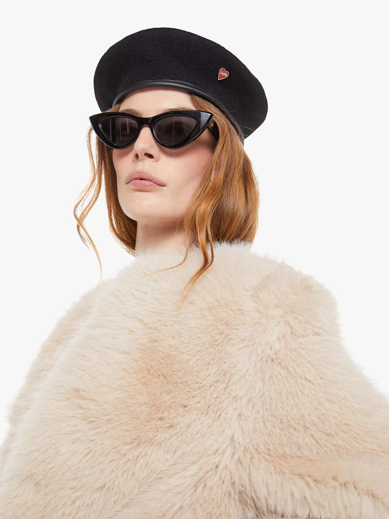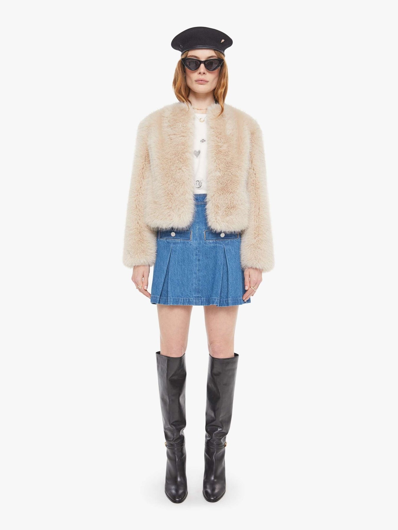Against the grain. A cropped jacket with a crewneck and boxy fit. Designed in soft faux-fur, Counter Culture is a creamy light pink.