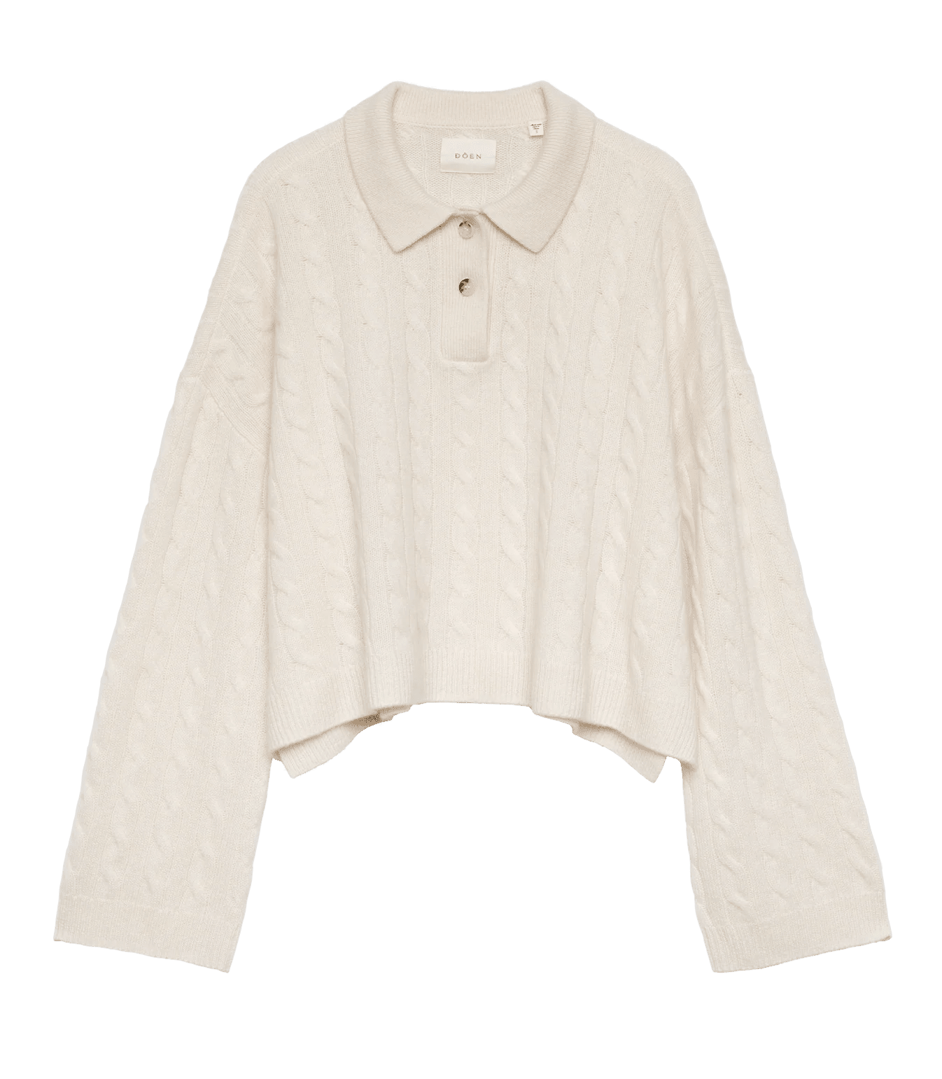 Inspired by a vintage sweater, the Cambridge is cable-knitted from soft, 100% cashmere in a boxy, slightly cropped silhouette. Designed with straight, full-length sleeves, it features a Henley-style collar finished with two faux horn buttons.