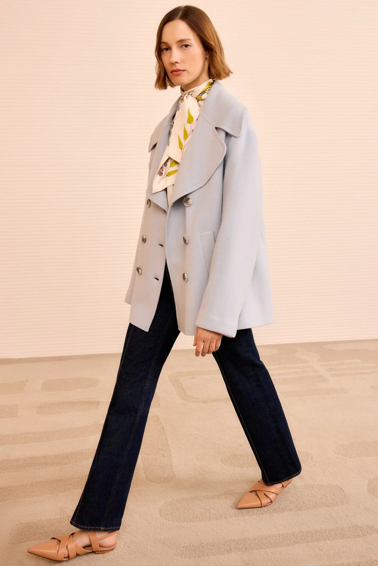 A modern variation on the peacoat, the Diana Jacket is tailored from signature wool-cashmere with a double-breasted construction and sweeping, notched lapels. The slate gray lends this essential versatile ease, while the horn-effect buttons add a sophisticated touch.