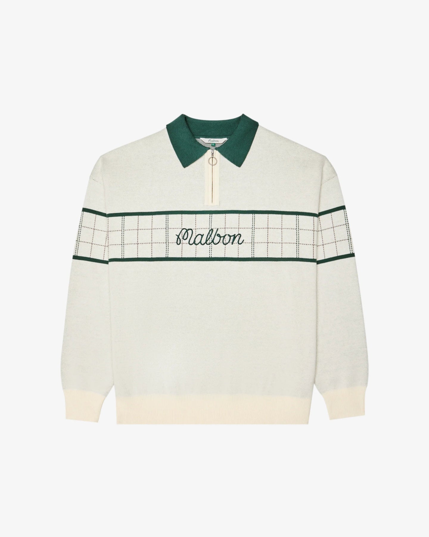 Crafted of cotton fashioned knit, Malbon Golf's Bennett Plaid Sweater has the holidays written all over it. It's soft, relaxed, and features our M script logo embroidered with holly leaves.